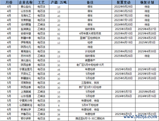 恒通、上海氯碱等加入检修,预计检修减损量略增