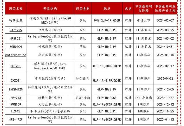 中新医药目前有两款 GLP-1 多靶点处于临床阶段,一款为 GLP-1R/GIPR/GCGR 三重激动剂 ZX2021,处于临床二期,临床进度仅次于联邦制药 / 诺和诺德的 UBT251,进度国内第二;另一款为 GLP - 1/GIP 双重受体激动 ZX2010,也进入了国内临床二期。